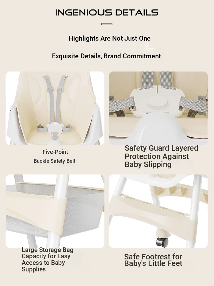 Foldable Portable Baby High Chair - Multi-Functional Growth Seat for Infants and Toddlers, Perfect for Home Dining and Easy to Store!