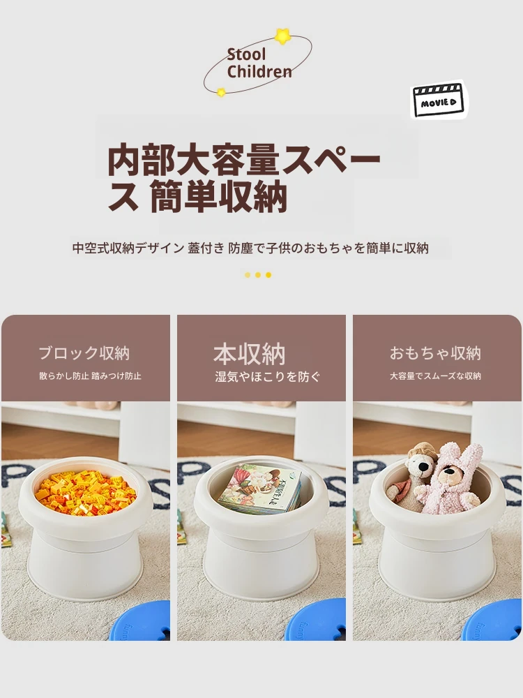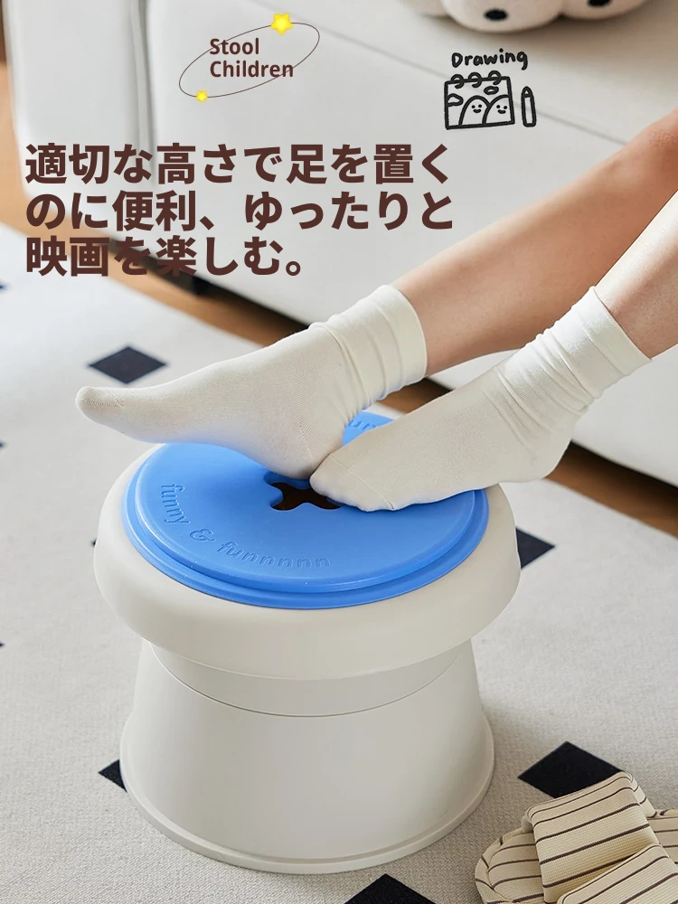 トイレ用プラスチック踏み台 - 厚手設計で子供も安心!リビングで足を乗せたり、おもちゃの収納に便利な収納スツール。快適さと機能性を兼ね備えたアイテムです!