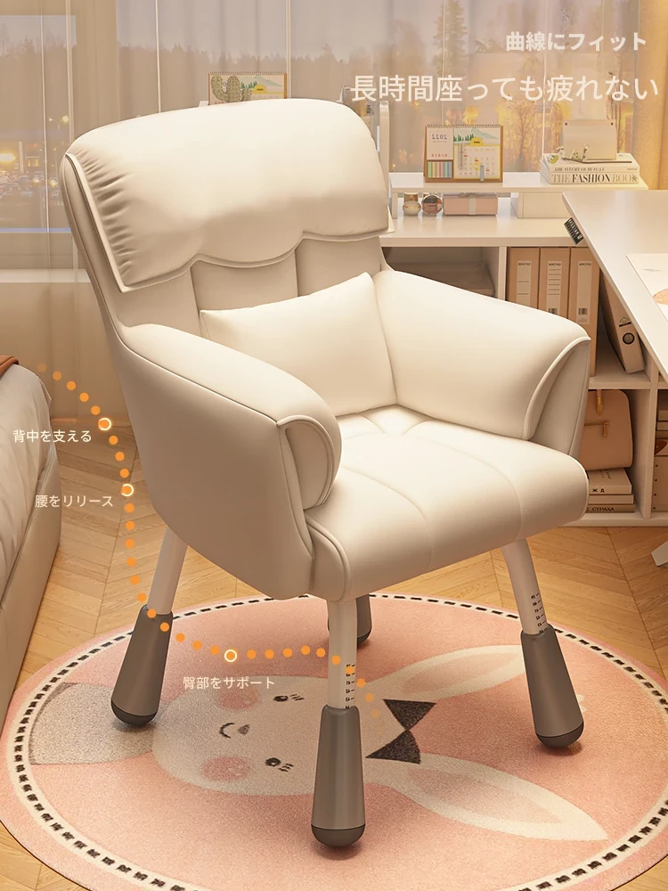 快適な座り心地!家庭用デスクチェア - 調節可能な背もたれと高さで、長時間の勉強やメイクにも最適。女性のためのスタイリッシュなデザインで、寝室や寮での使用にもぴったり!