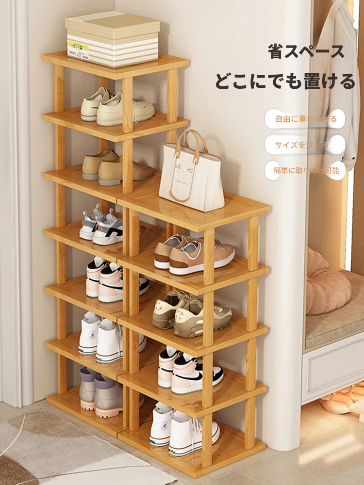 多機能シューズラック - 家庭用・簡易型・玄関用!省スペースの多層収納で、経済的な寮用にも最適なスリムな靴棚!整理整頓を簡単に実現し、玄関をスッキリさせましょう!