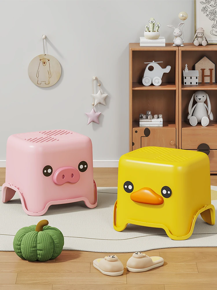 子供用厚手プラスチックスツール - リビングやバスルームに最適!滑り止め設計で安心、靴を履く時や玄関での便利な一脚です。おしゃれで機能的な小さな椅子、子供の成長をサポートします!