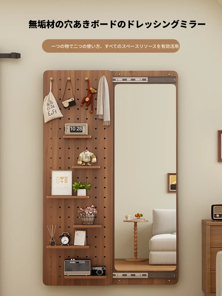 隠し穴付きドレッシングミラー - スライド式全身鏡!家庭用、寝室や玄関に最適な壁掛けデザインで、スタイリッシュにコーディネートを楽しめます。おしゃれな空間を演出し、毎日の準備を快適にサポート!