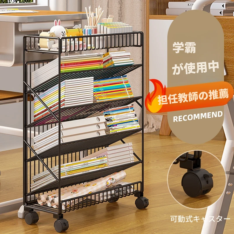 移動式デスクサイド収納ラック - 学生のための便利な本棚、教室や勉強スペースに最適!キャスター付きで簡単に移動可能、すっきりとした収納で学びをサポートします。
