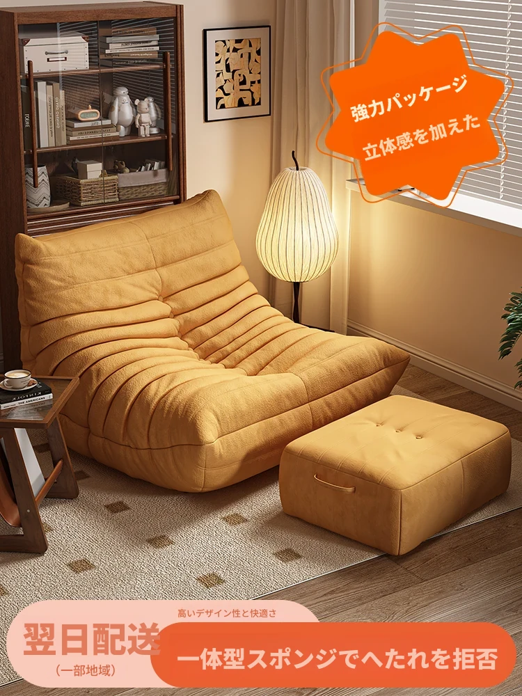リラックスできる!ふわふわ毛虫ソファチェア - 寝転んで快適な一人用ソファ。寝室やバルコニー、窓際にぴったり!背もたれ付きで、畳でも使える多機能デザイン。あなたのくつろぎ空間を彩ります。