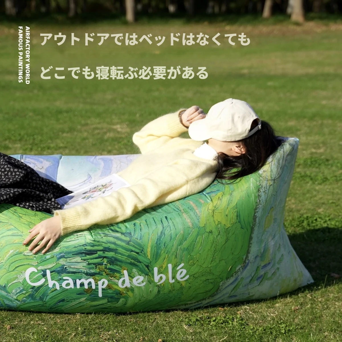アウトドア用リラックスソファ!寝そべっても、くつろいでもOK!畳スタイルの小さなソファ、バルコニーでのリラックスタイムにぴったり。人気のエアソファ、1人用の快適さを体感しよう!
