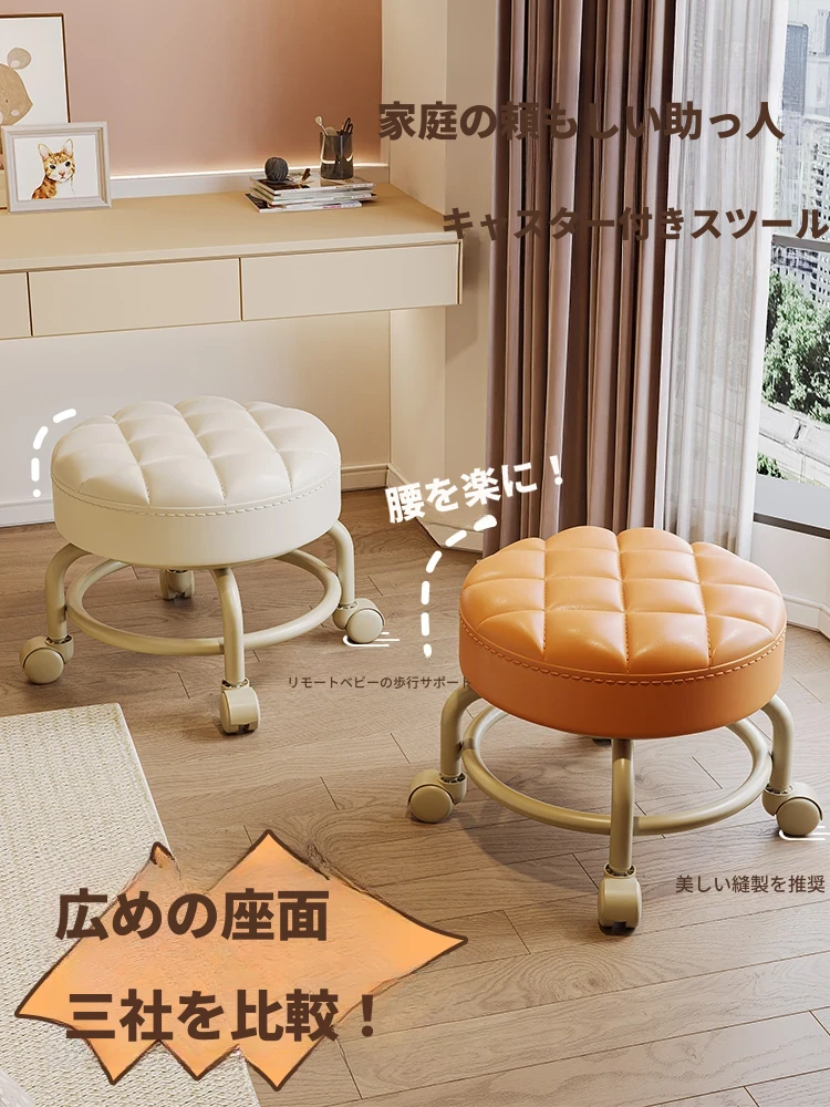 キャスター付きスツール - 玄関での靴の着脱に最適!赤ちゃんの歩行をサポートするコンパクトな円形スツール。家庭用にもぴったりな美しいデザインで、移動もラクラク!